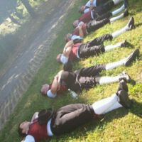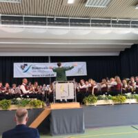 Alle waren wir am Sonntag nach dem Gesamtchor, Umzug und der Nachmittagsunterhaltung gespannt auf die Note und endlich wurde sie verkündet. „Sehr Gut“ zum ersten Mal in der Oberstufe. Wir haben uns alle riesig gefreut und die Stimmung war ebenso „sehr gut“. Vorsorglich waren wir mit dem Bus angereist, was sich als kluge Entscheidung herausstellte. Wieder zu Hause, wo wir spielend in Grötzingen einmarschierten, wurden wir mit Plakat und Sekt empfangen.