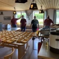 Aufgrund der Coronapandemie konnte nicht nur das Jahreskonzert, sondern auch sämtliche Unterhaltungsauftritte, die Q-Stall Party und Geburtstagsständchen leider nicht stattfinden. Da wir uns dann das Gartenfest im Juli aber nicht nehmen lassen wollten, fand dieses in Form eines Drive-In’s an unserem Musikerheim statt. 2 ½ Stunden herrschte reger Betrieb im und um unser Musikerheim. Autos fuhren vor und holten die vorbestellten Maultaschen mit Kartoffelsalat, Schweinehals mit Kartoffelsalat sowie leckeren Kuchen und Getränke ab, um sie zu Hause zu genießen.